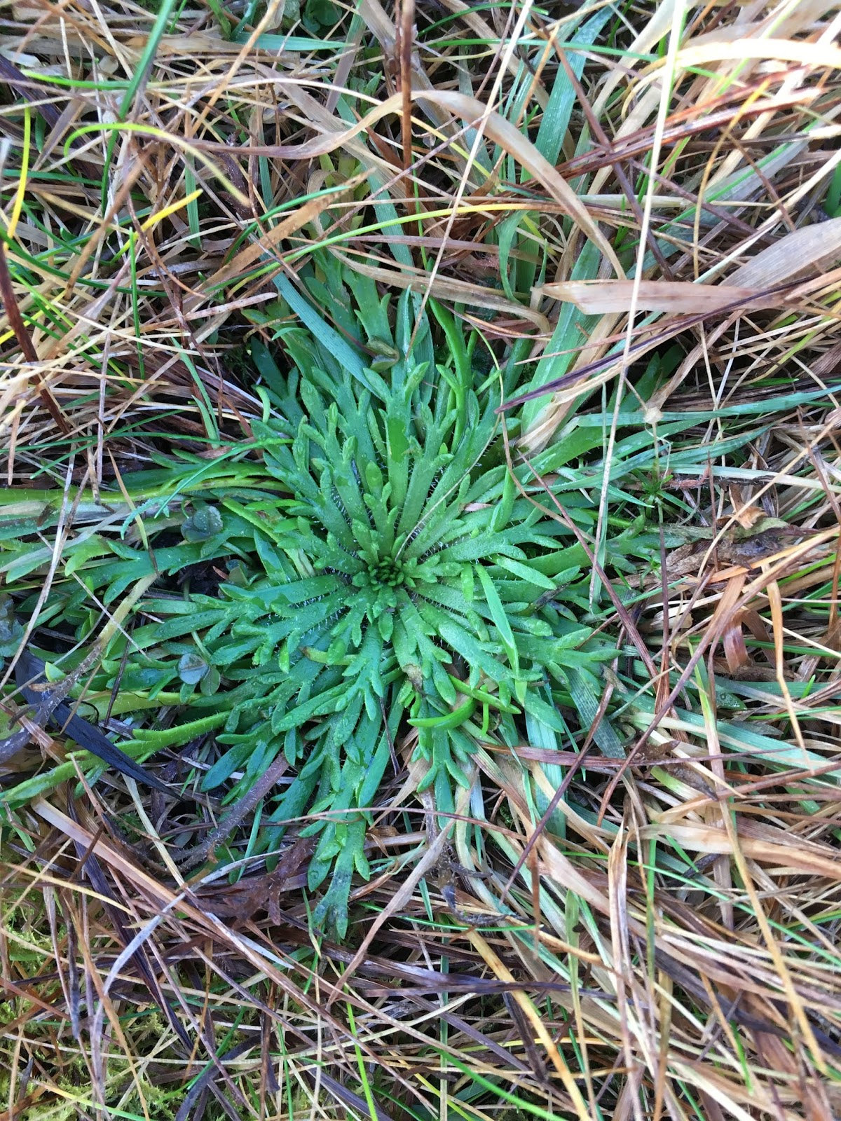 Amongst the yellowing grasses and sedges along the clifftops, rosettes of Buck's-horn Plantain were looking decidedly green and festive.