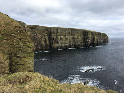 The forecast hinted at a brief weather window late morning, before things turned downhill with the anticipated arrival of Storm Freya (or 'more weather' as we like to call it). Our Lass, seemingly over her cold, was keen to revisit the seabird cliffs and I wasn't about to argue. Early morning showers had drifted through, leaving behind an overcast, but calm, sky. We bundled optics into the car and drove down to the Bay of Semolie, hoping that the promised sunshine would appear.